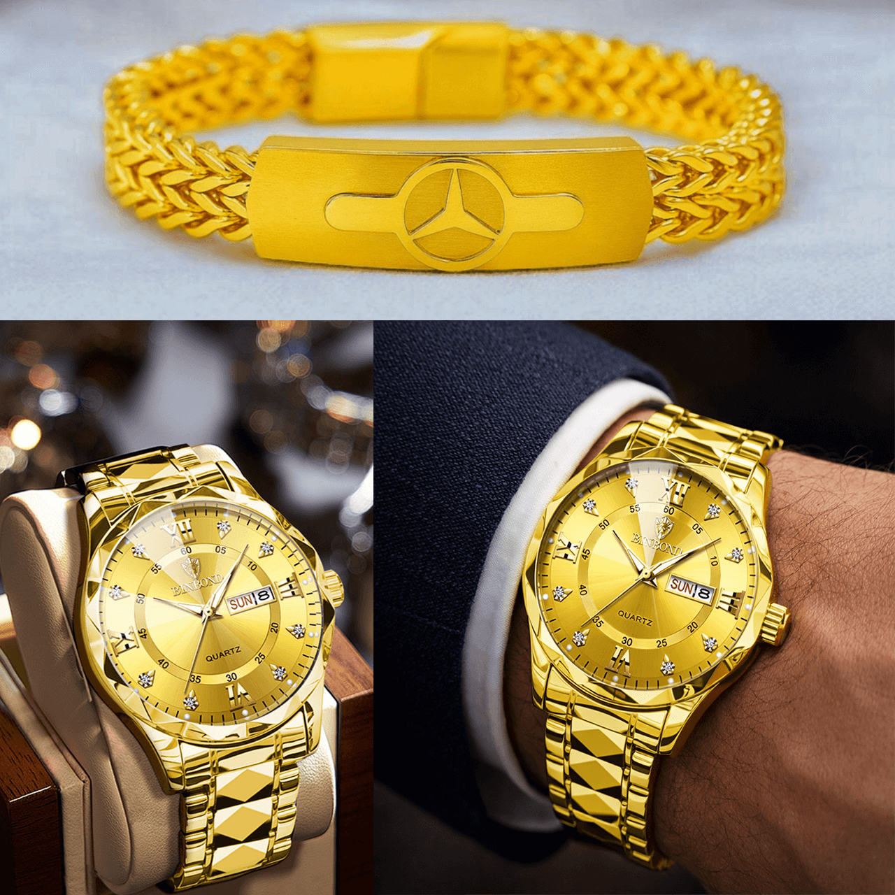 BINBOND Watch & Bracelet Combo (Golden)